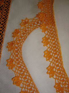 Cortina belíssima, em linho com grande e graciosa aplicação em croché e bainhas abertas...o conjunto é simplesmente maravilhoso!